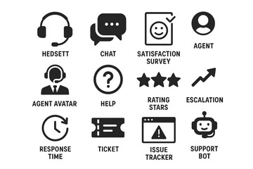 Support and assistance icons representing various customer service activities in a modern digital environment