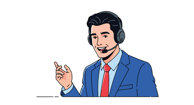 Friendly customer service representative provides assistance via headset for support calls and technical assistance, offering solutions and