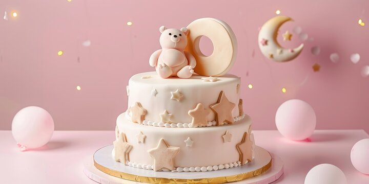 Birthday cake with balloons and ribbons 3d render on white background., perfect for customizable greetings generative by ai.