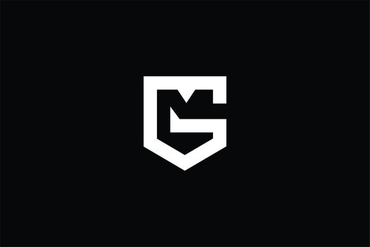 letter GM shield icon logo, letter GM shield banner armor logo, Letter G Shield Guard Logo Design  Minimal awesome trendy professional logo design template on black background