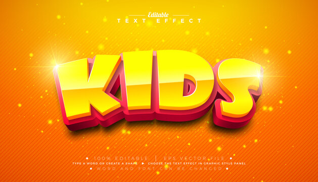 Kids 3D Text Effect Design Editable and Scalable Vector Graphic Style Effect with Yellow and Red Typography Lettering with Shadow on Shiny Background. Premium Illustration Template for Greeting Card