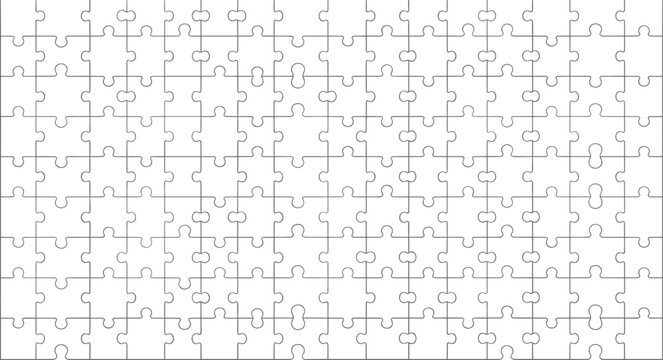 Blank jigsaw puzzle template vector featuring clean outlined pieces, customizable layout, interlocking shapes, and empty design for games, education, branding, and creative projects