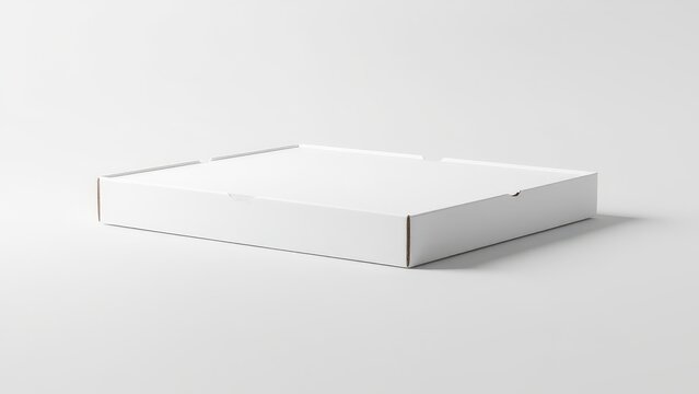 Mockup of a white long pizza box, featuring a smooth, blank surface and soft shadows