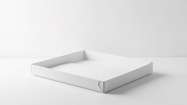 White long pizza box, open and empty, perfect for promotional or branding purposes