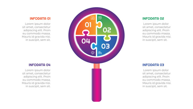 4 Steps Gradient Magnifying Glass Puzzle Infographic Element. Modern and clean design for presentations, reports, and web