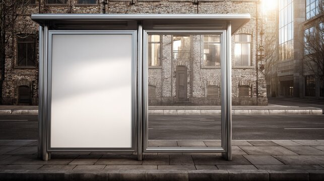 Commercial Billboard. Empty Outdoor Sign against a Cloudy Morning Sky. Design Template.