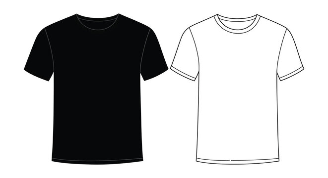 Simple illustration of a black and white crew neck t shirt design mockup