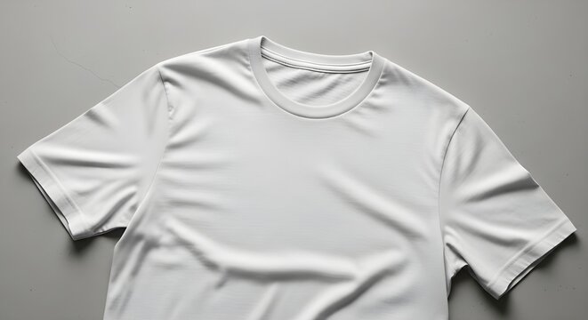 Clean white t shirt mockup with crew neck and short sleeves on a gray background