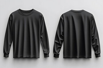 Mock up design of front and back view of a black blank long sleeve t shirt with an isolated background