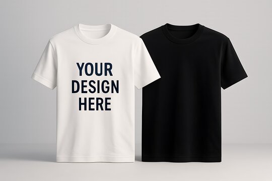 white and black t shirt mockup with customizable design space, easy to edit shirt template for branding or design
