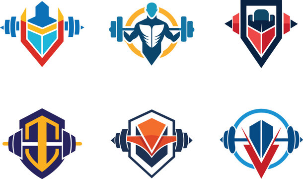 Six Versatile Fitness Logo Designs featuring Barbells and Strongman Motifs ideal for Gym Branding and Athletic Identity