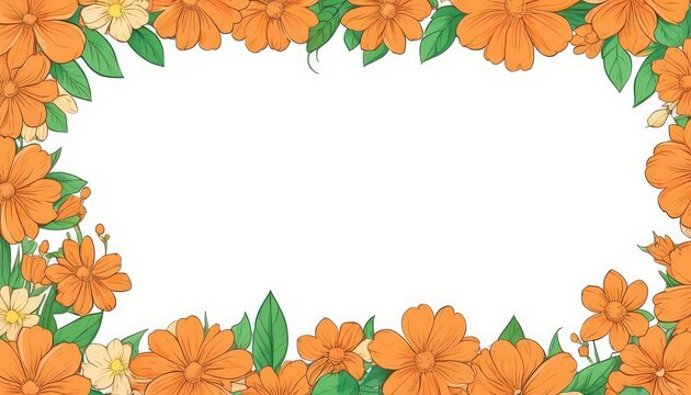 Radiate warmth with our hand-drawn orange floral frame illustration. A blank canvas invites your text or photo, adding a cozy touch to your design