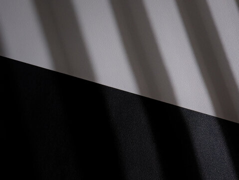 Black and White leather texture background with window plant leaf shadow. Backdrop shadows for personalize custom message