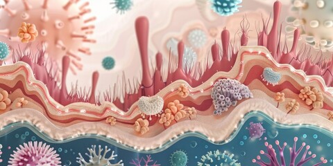 A Detailed Illustration of the Skins Layers and the Microbial Flora that Protects Against Pathogens, Generative AI