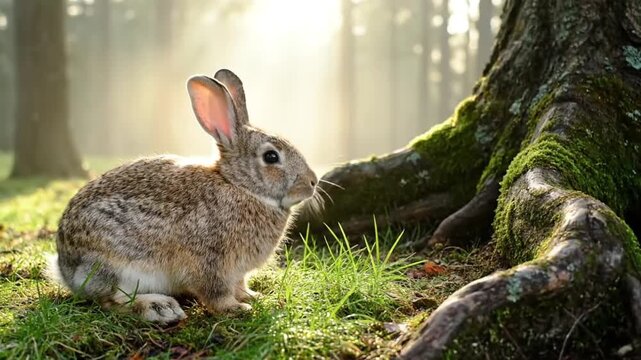 Bunny in Lush Green Field on Golden Hour