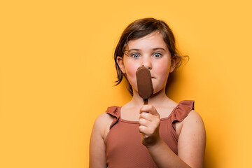 Funny cute child looking at ice cream bar with curiosity