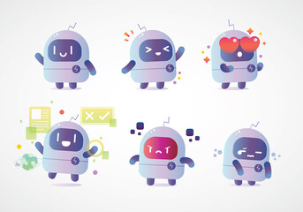 modern minimal simple robot mascot character set