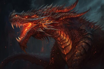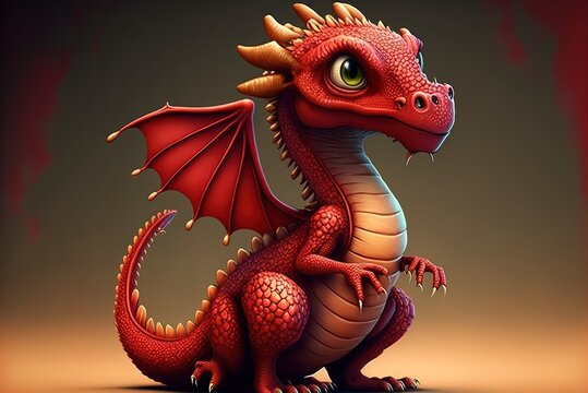 A mythical red dragon generated in a 3D style in a variety of colors. Generative AI image in modern animation style. This dragon is red
