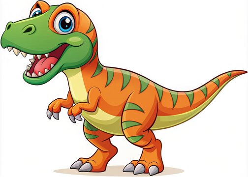 A cute, simplified cartoon Tyrannosaurus Rex with bold lines, bright colors, and a friendly expression, perfect for kids' educational materials and playful designs.