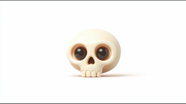 3D skeleton skull round shape, cute minimal cartoon look, clipart on white background