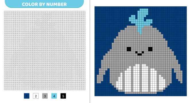 Whale squishmallow. Color by number. Pixel coloring book. Numbered squares. Game for kids