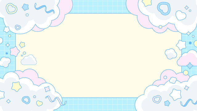ふわふわの雲と星のゆめかわいいパステル背景フレーム