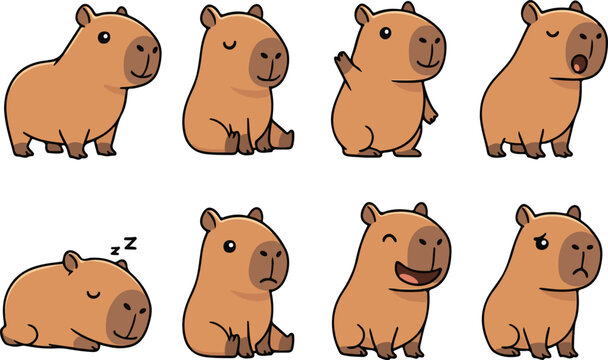 vector illustration of capybara funny cute cartoon mascot character cartoon with 8 poses
