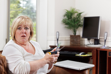Woman reacts with horror as she cuts up credit card