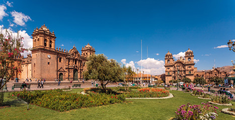 The Plaza de Armas in Cusco, the landmark of Peru.
