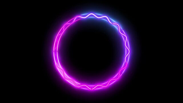 Abstract glowing purple rings form a vibrant tunnel with flowing neon light and a sense of dynamic movement