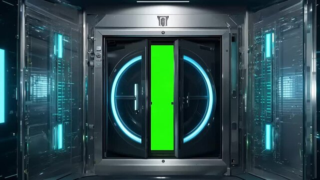 Witness animation offuturistic scifi vault door opening revealinggreen screen hightech visual effect ideal security es presentations presented ultra HD 4K resolution stunning clarity bank safe trust