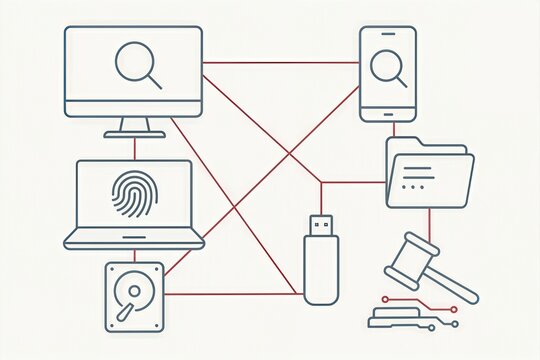 Digital Forensics Ecosystem Mapping Data Security Analysis with Interconnected Devices Algorithms and Cyber Vigilance Framework captured with clarity