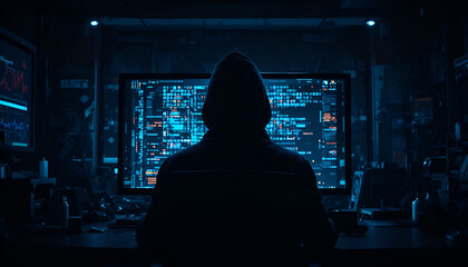 Illustration of spyware concept. Cyber security and cybercrime ideation art.