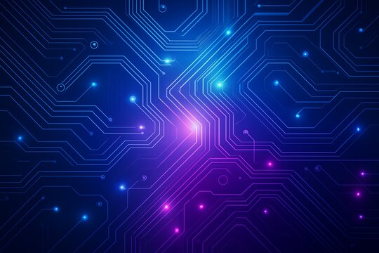 Blue and green glowing digital circuitry with nodes and lines forms a dynamic and futuristic techno landscape