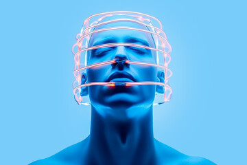 Generative AI Image Of Man Wearing Futuristic Headset With Neural connections