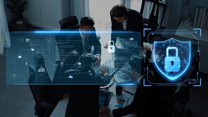 Collaborative cybersecurity strategies in a modern office environment group discussion digital focus