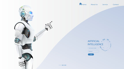 Cyborg AI detailed vector. Machine learning AI with big data. Artificial intelligence analysis information.