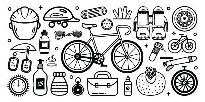 Silhouette collection of bicycle parts and accessories for repairs and upgrades.