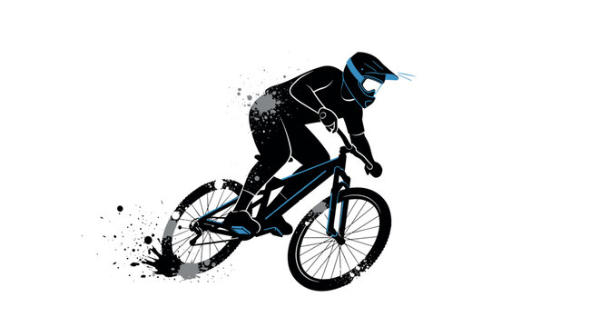 Dynamic bmx cyclist silhouette with splashing effects and blue accents