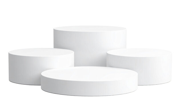 White cylindrical display stands isolated on a white background