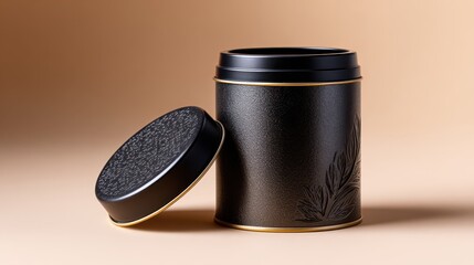 Black matte cylindrical container with lid mockup