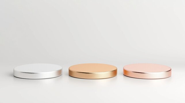 Metallic cylindrical podiums in gold, silver, and bronze