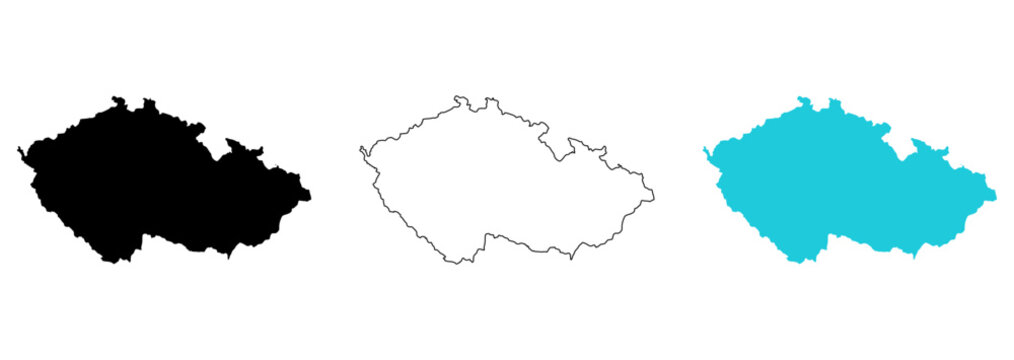czech map vector set on white background. Map in various style outline, black, and blue