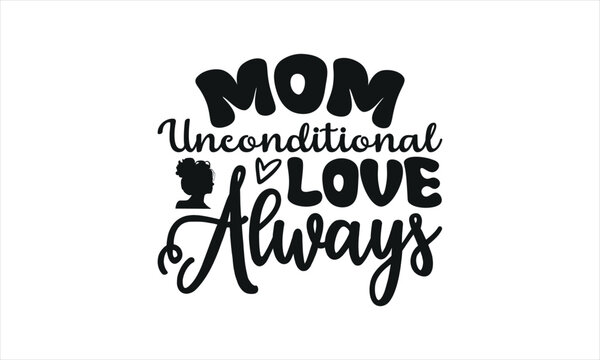 Mom Unconditional Love Always -mom t shirts design,, Handmade calligraphy vector illustration,Hand drawn lettering phrase, Illustration for prints on t-shirt and bags, posters, EPS 10