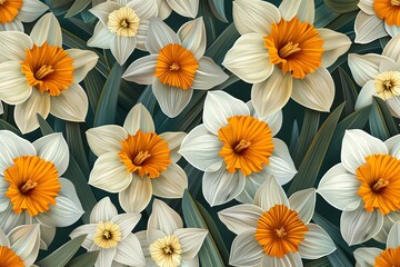 Daffodil Daffodils Flower Flowers Seamless Repeating Repeatable Texture Pattern Tiled Tessellation Background Image