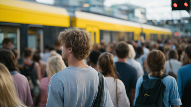 Teenage Boy Texting on Smartphone in Yellow Jacket on Subway Train