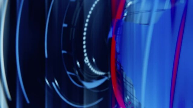 Live News Studio Professional Anchor Reporting on Weather Forecast. Weatherman, Meteorologist, Reporter in Television Channel Newsroom with Video Screen Showing Weather Synoptic Map Chart for U.S.