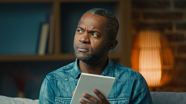 Pensive adult african american man indoors thinking deep in thoughts create strategy thoughtful businessman making notes in notebook planning searching for solution writing down idea write memories