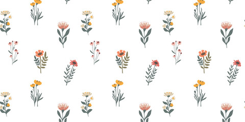 seamless pattern of delicate pink wildflowers dainty foliage gracefully spread over clean white background freshness simplicity elegant springtime textiles wallpapers delicate stationery items.