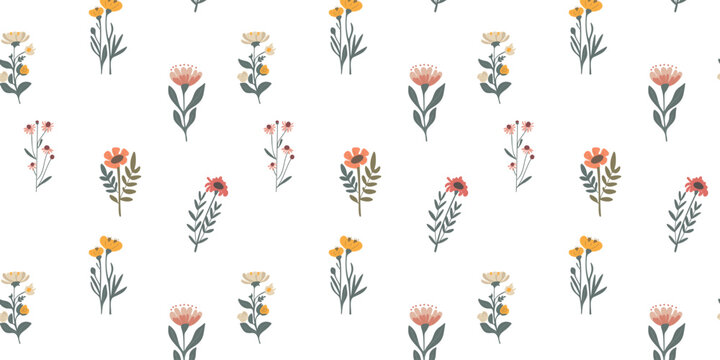 Seamless Pastel Floral Pattern with Hand-Drawn Flowers